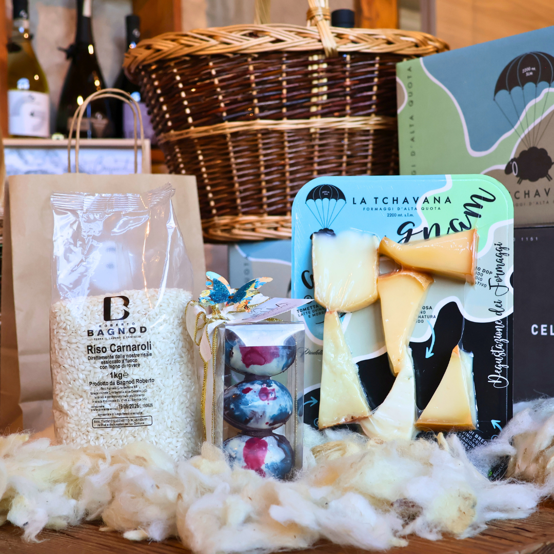 La box “Rinascita Alpina” è un piccolo viaggio nei sapori che segnano la rinascita della natura. Pensata per chi ama le cose semplici ma autentiche, include la nostra Degustazione La Tchavana , un sacchetto di Riso Carnaroli di qualità superiore , e uova fresche delle nostre galline felici. Perfetta per una tavola pasquale che vuole unire tradizione e leggerezza.